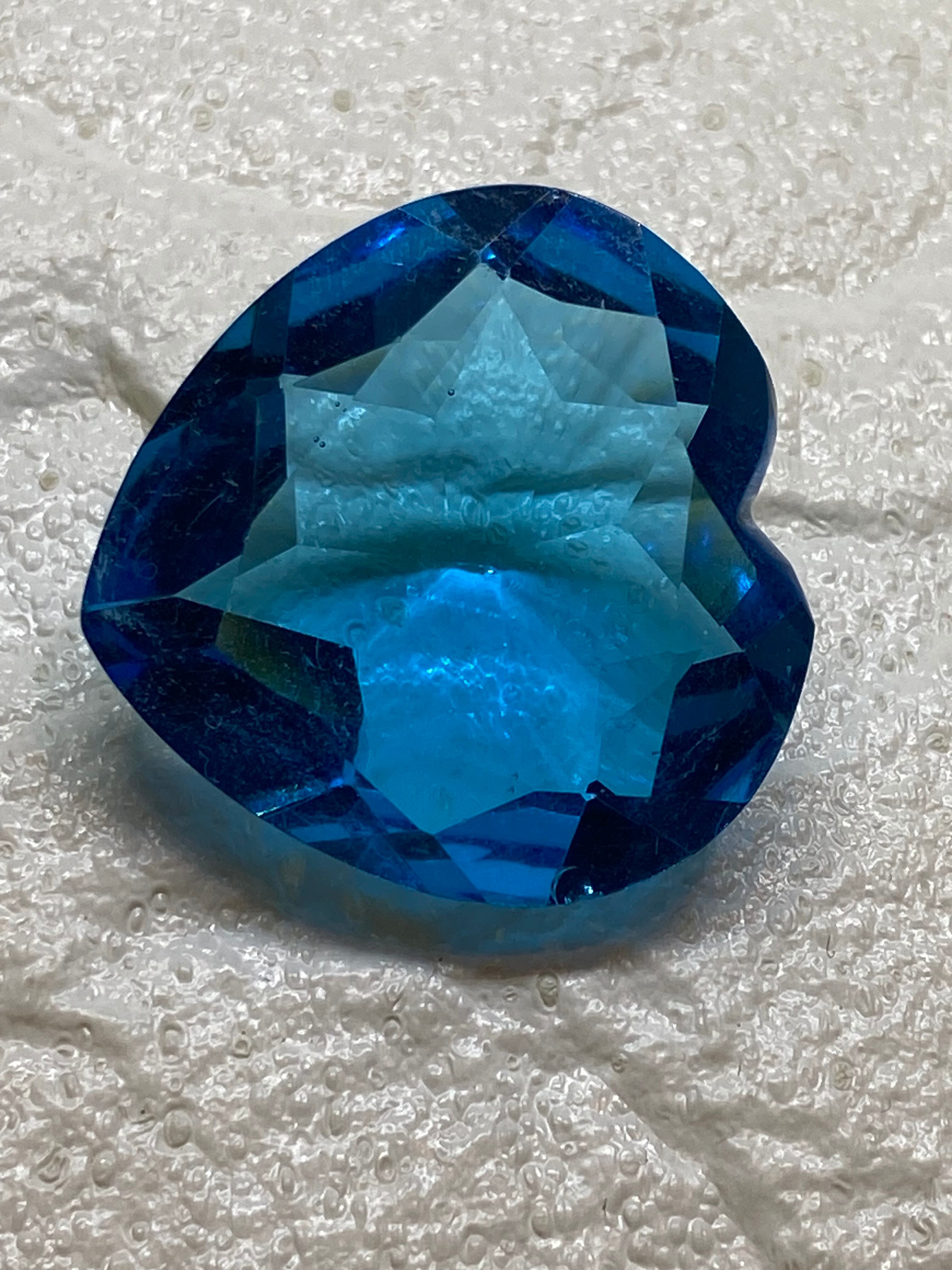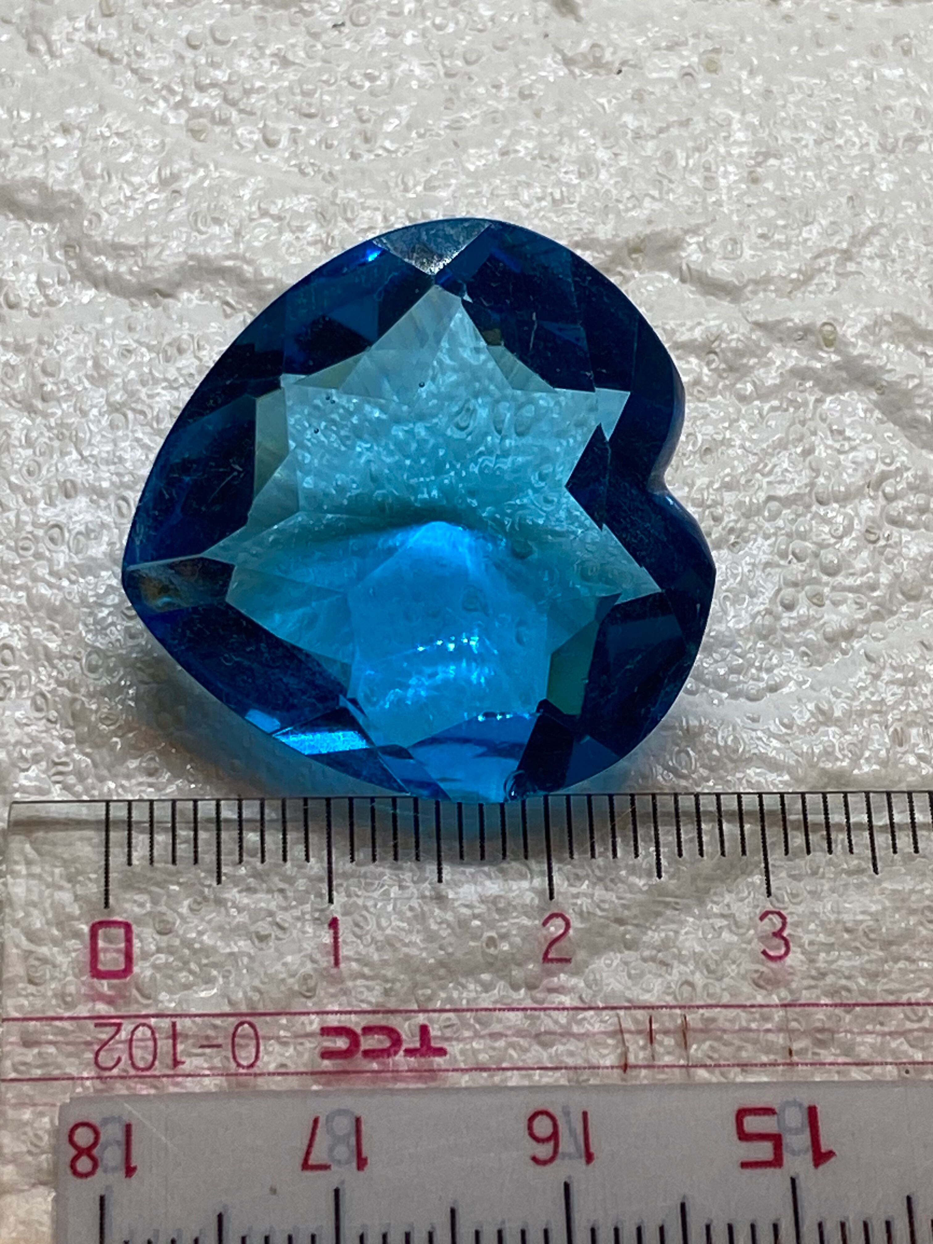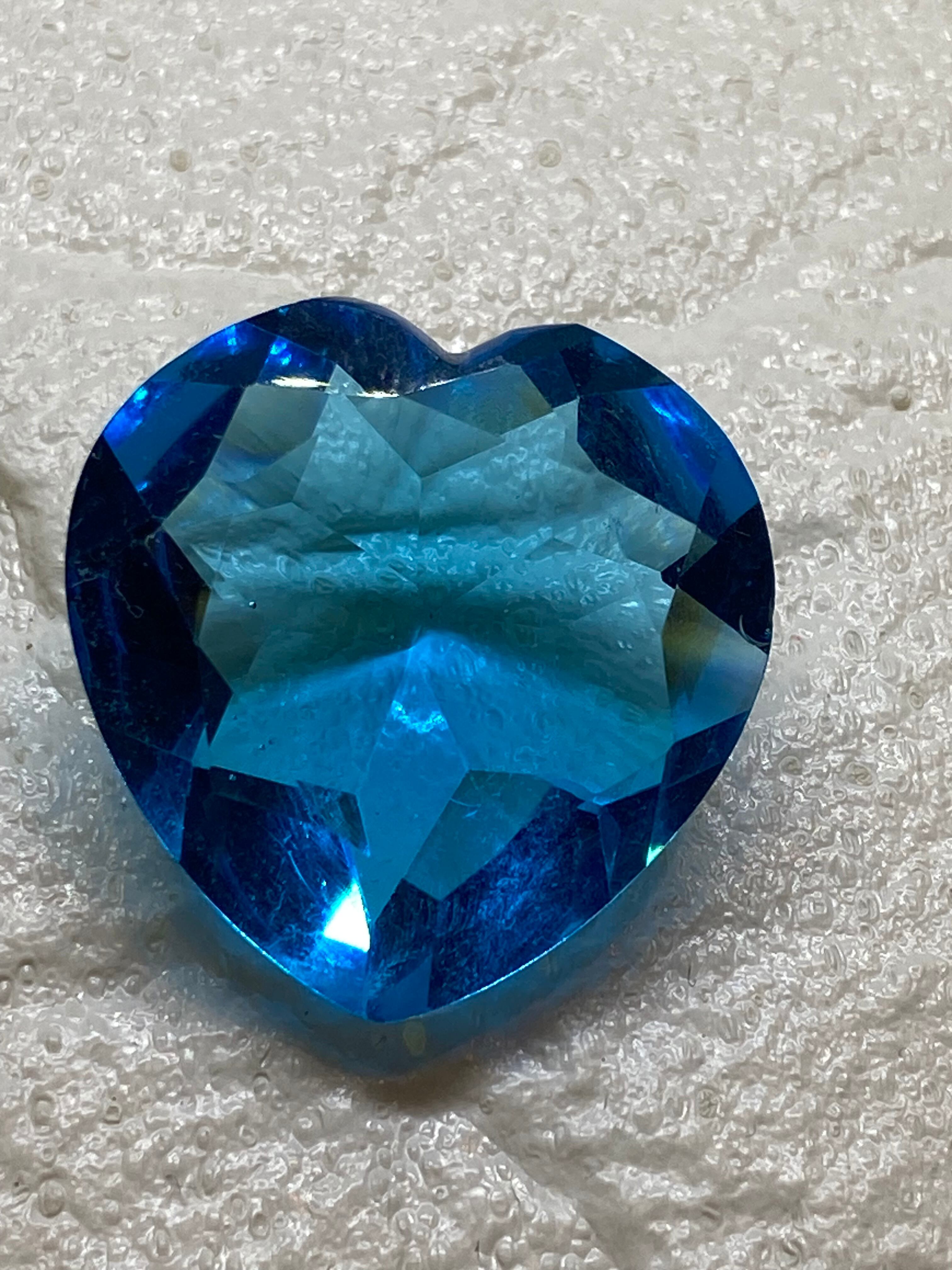 美しいハート型のロンドンブルー、ファセットカット仕上げで光を反射し、彷徨を放ちます。
