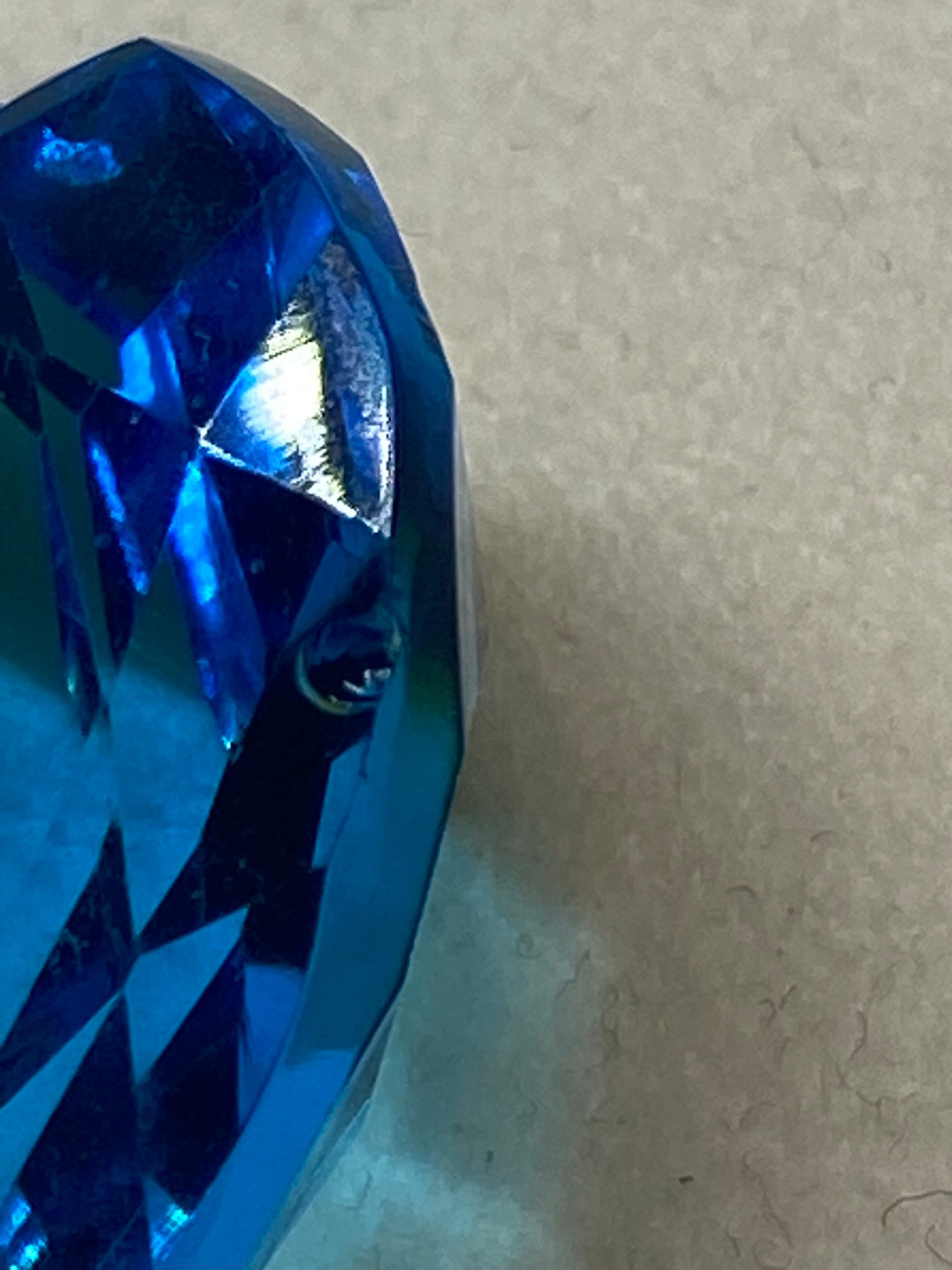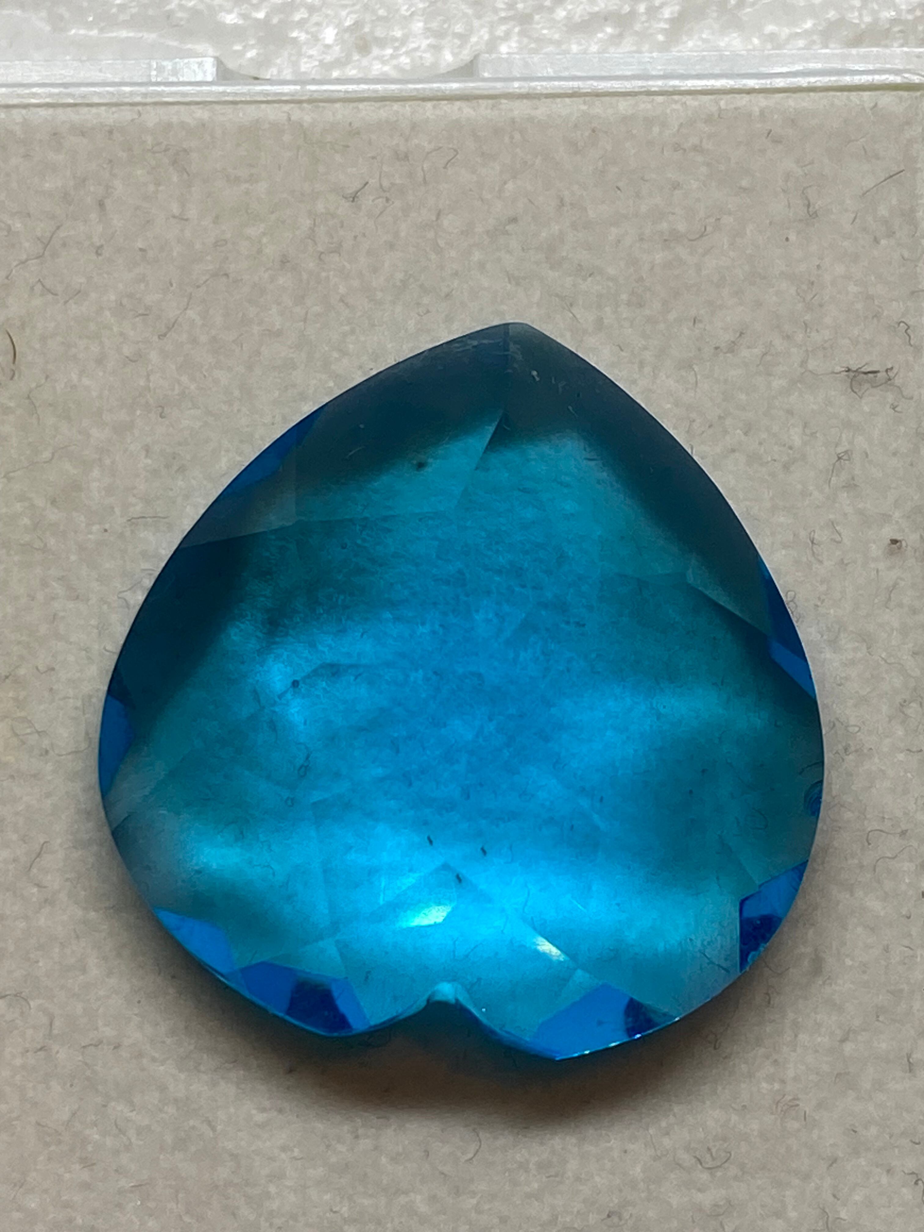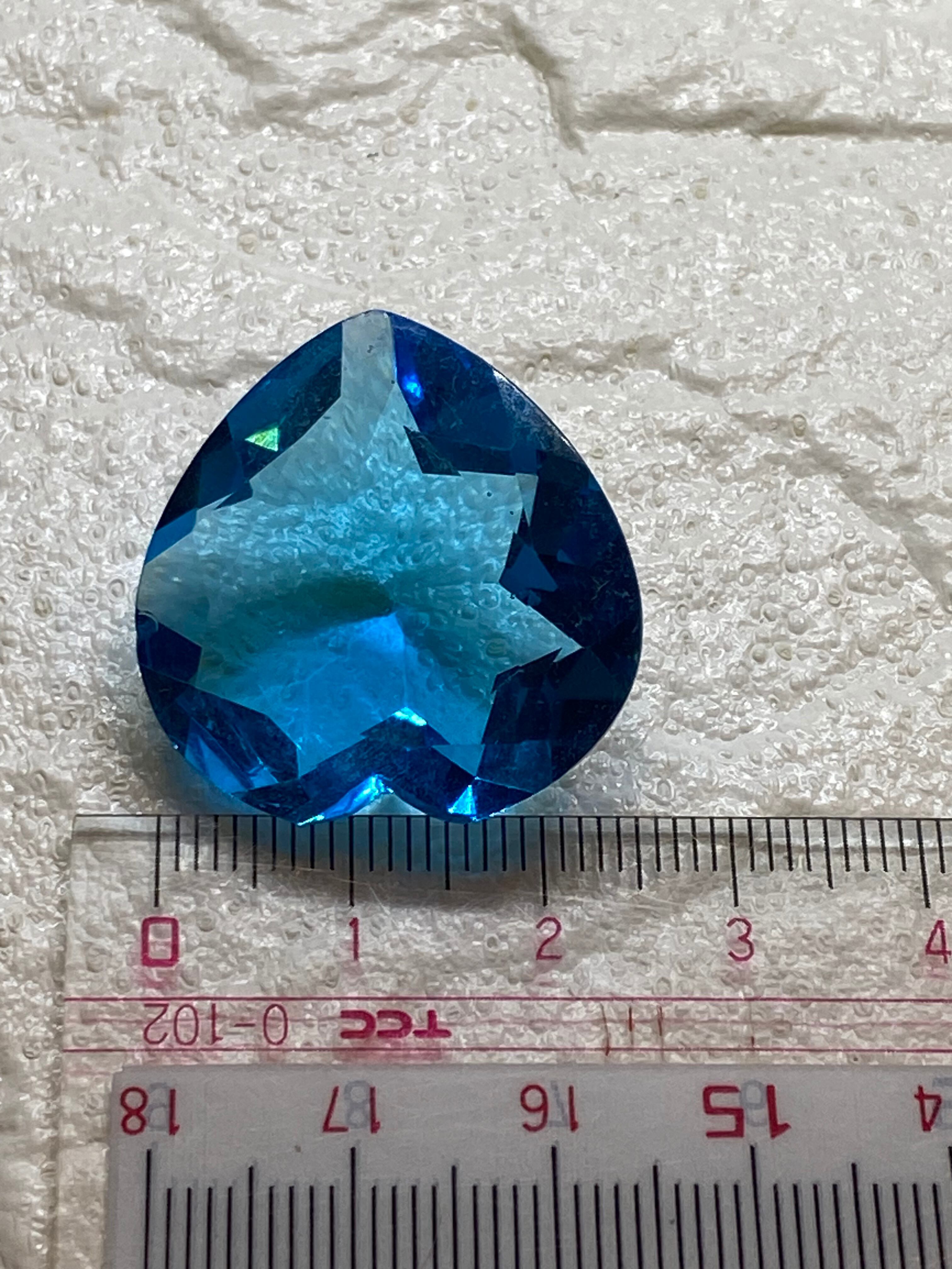 美しいハート型のロンドンブルー、ファセットカット仕上げで光を反射し、彷徨を放ちます。