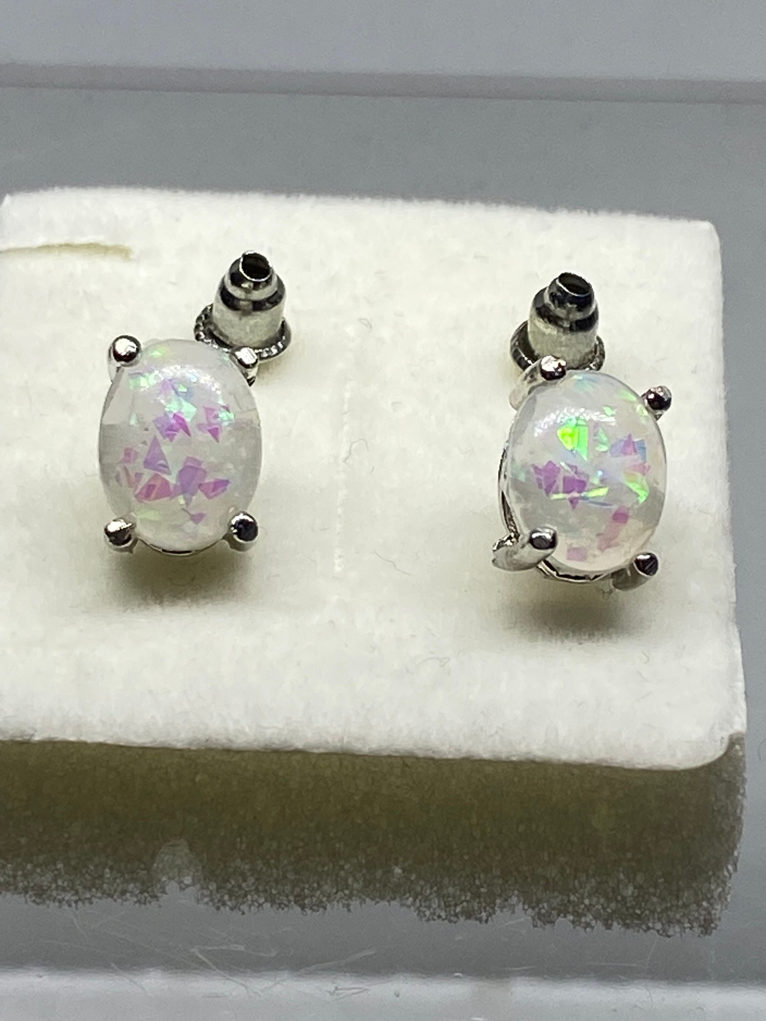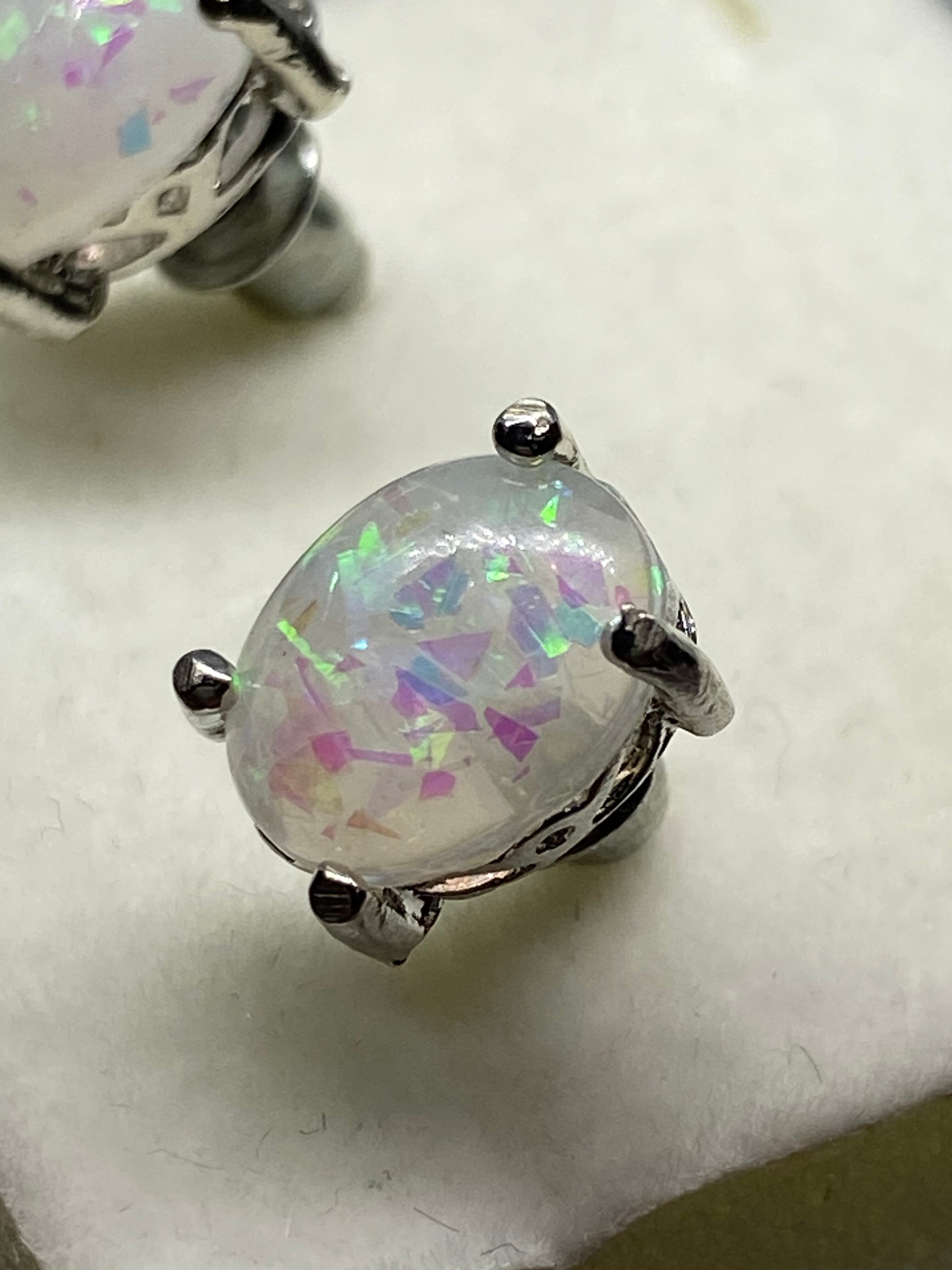 シンセティック ホワイトオパール ピアス sv925sp #130
